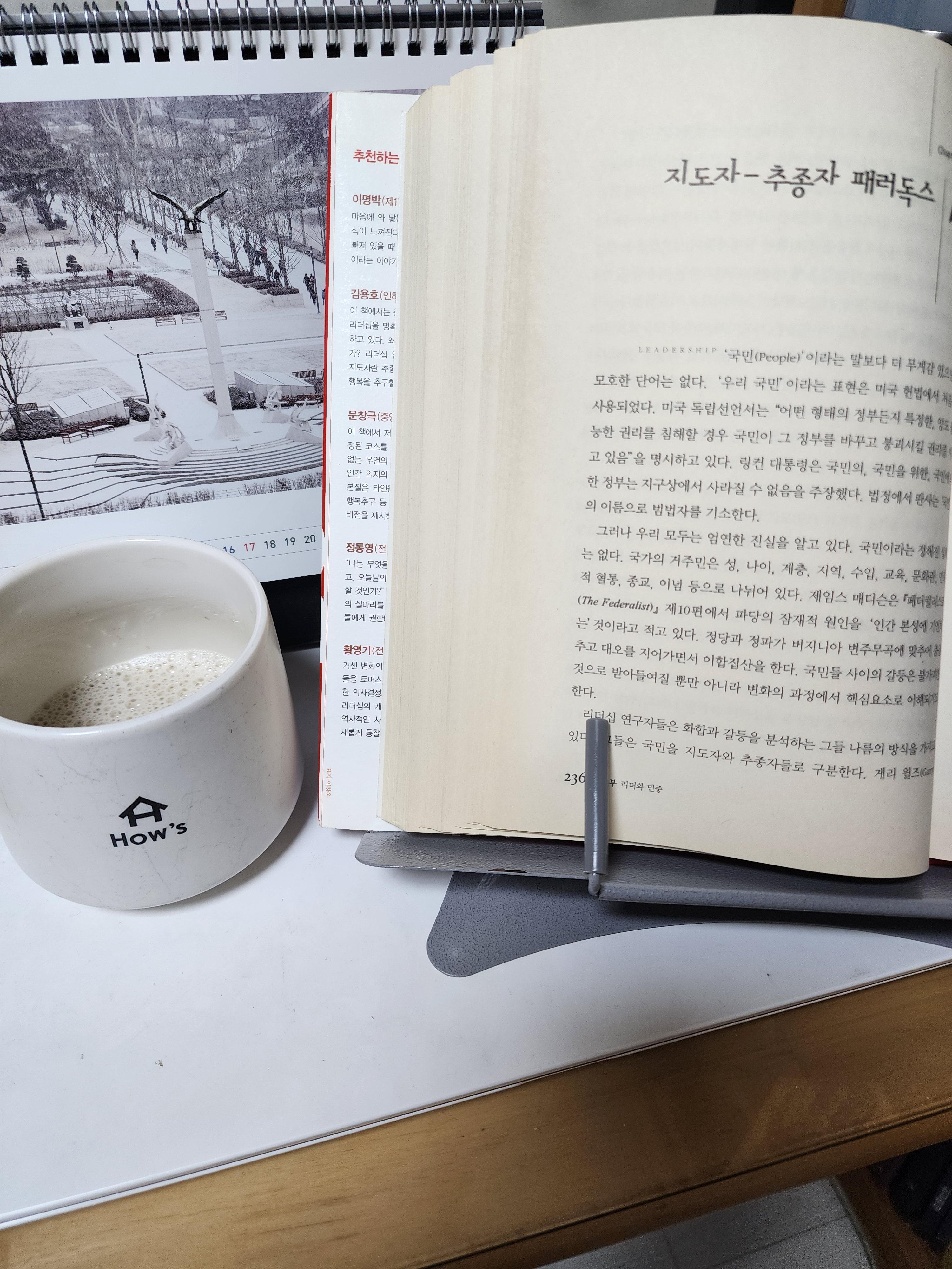 필자는 ‘리더십’은 집단적 과정이며, 그 역동성은 개인의 동기와 효능의 단순한 합계 이상으로 ‘의미있는 변화를 생산해내는 리더십의 힘’으로 정의하고, ‘통합된 동기유발’의 구조를 창조해내는데 ‘수평적’ 차원으로 나타난다는 통찰을 제시함(p209). 우리 사회에서 통합적 동기부여를 촉발하는 ‘요소’는?